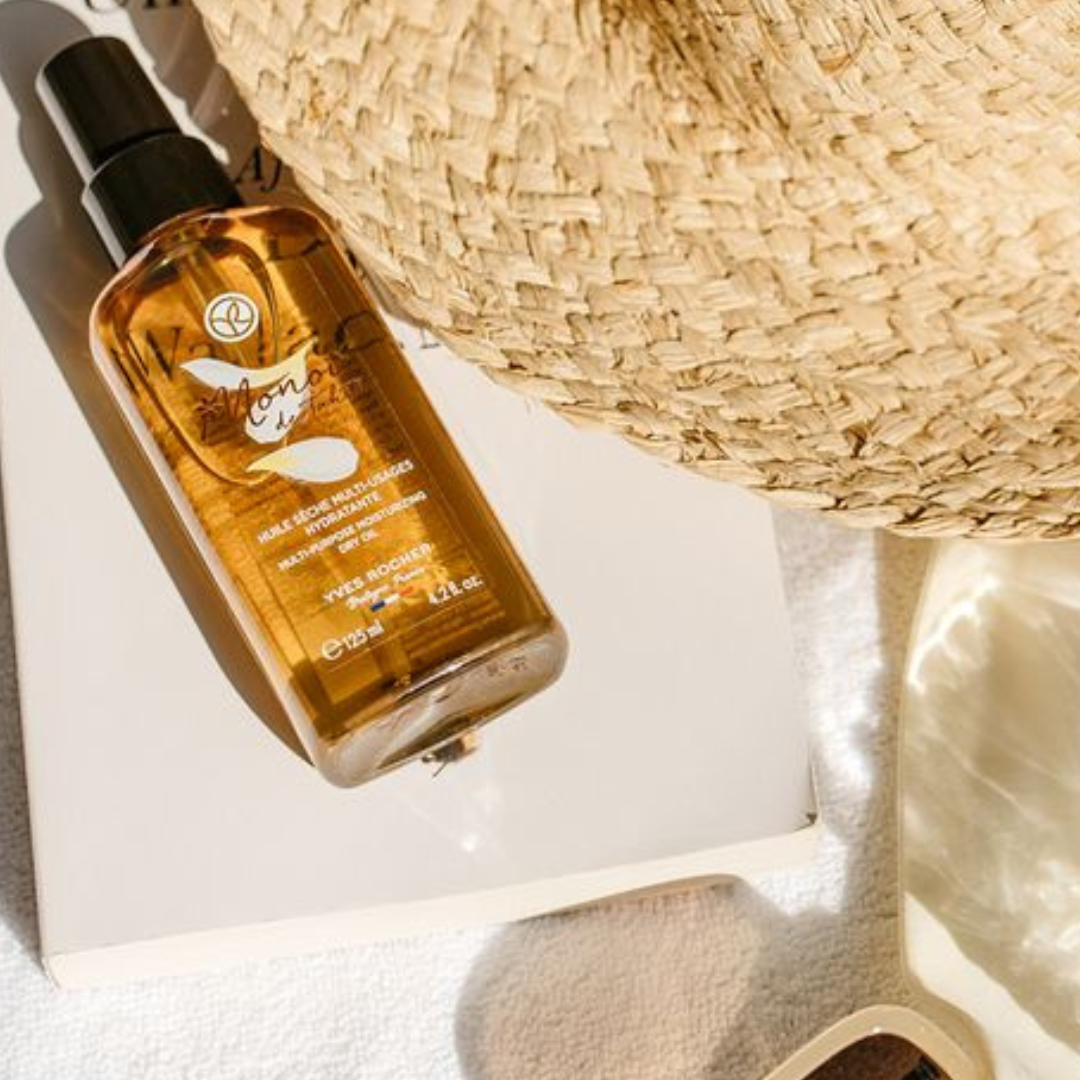 Enriched with Monoï de Tahiti (2%), this oil for body and hair, with a non-greasy finish, moisturizes skin and beautifies the tan.