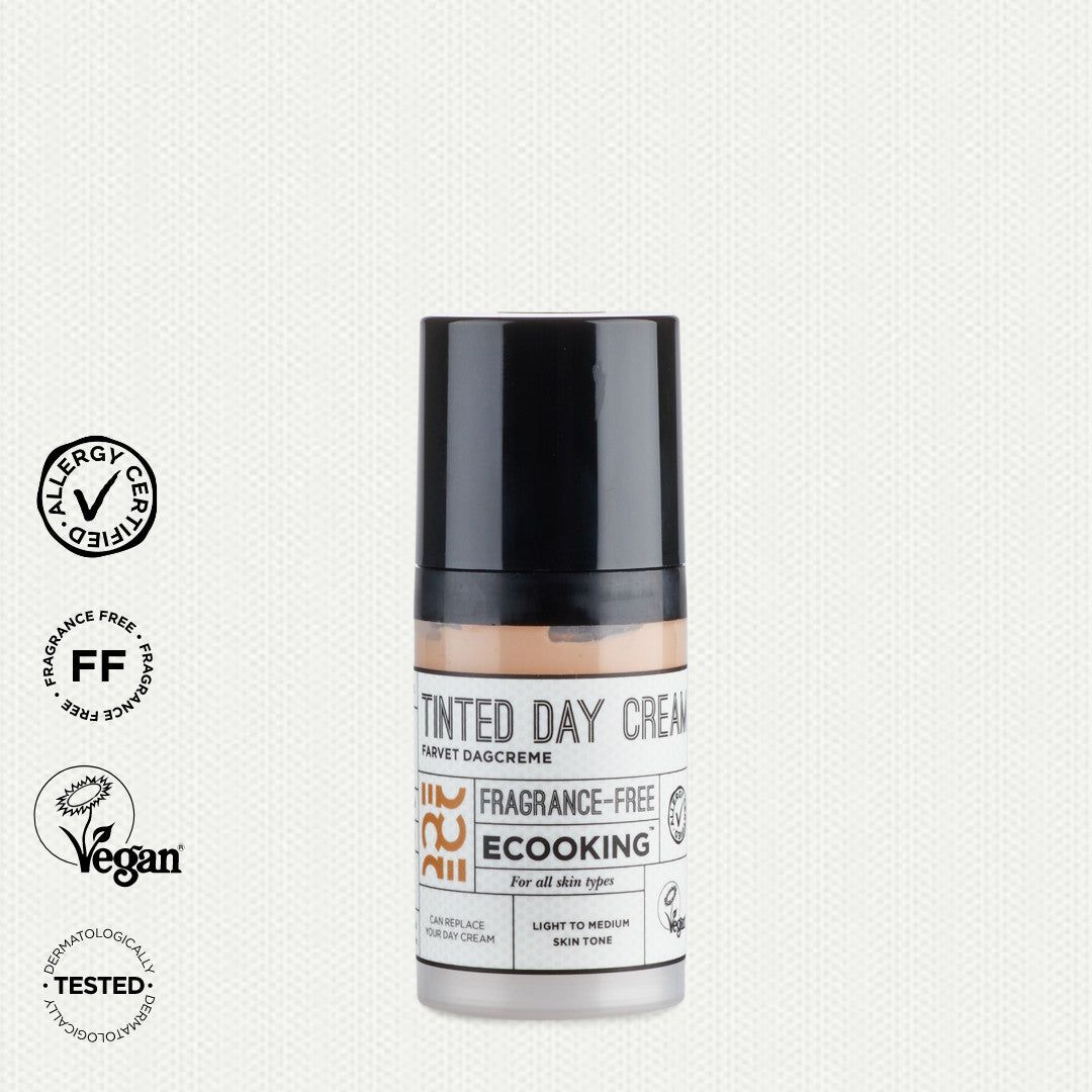 Tinted Day Cream is a combination of day cream and foundation in a very lightweight and transparent version. Therefore, a thin layer of Tinted Day Cream adds moisture and nourishment to your skin while it evens out your skin tone and gives a natural result.